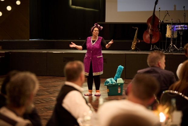 Die aus der fränkischen Fastnacht bekannte „närrische Putzfrau“ Ines Procter.